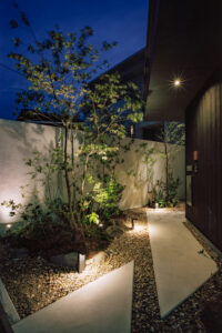 リビングからの眺めは外塀を配置することで隣家からの視線は完全になく、プライベートを守ることができています。